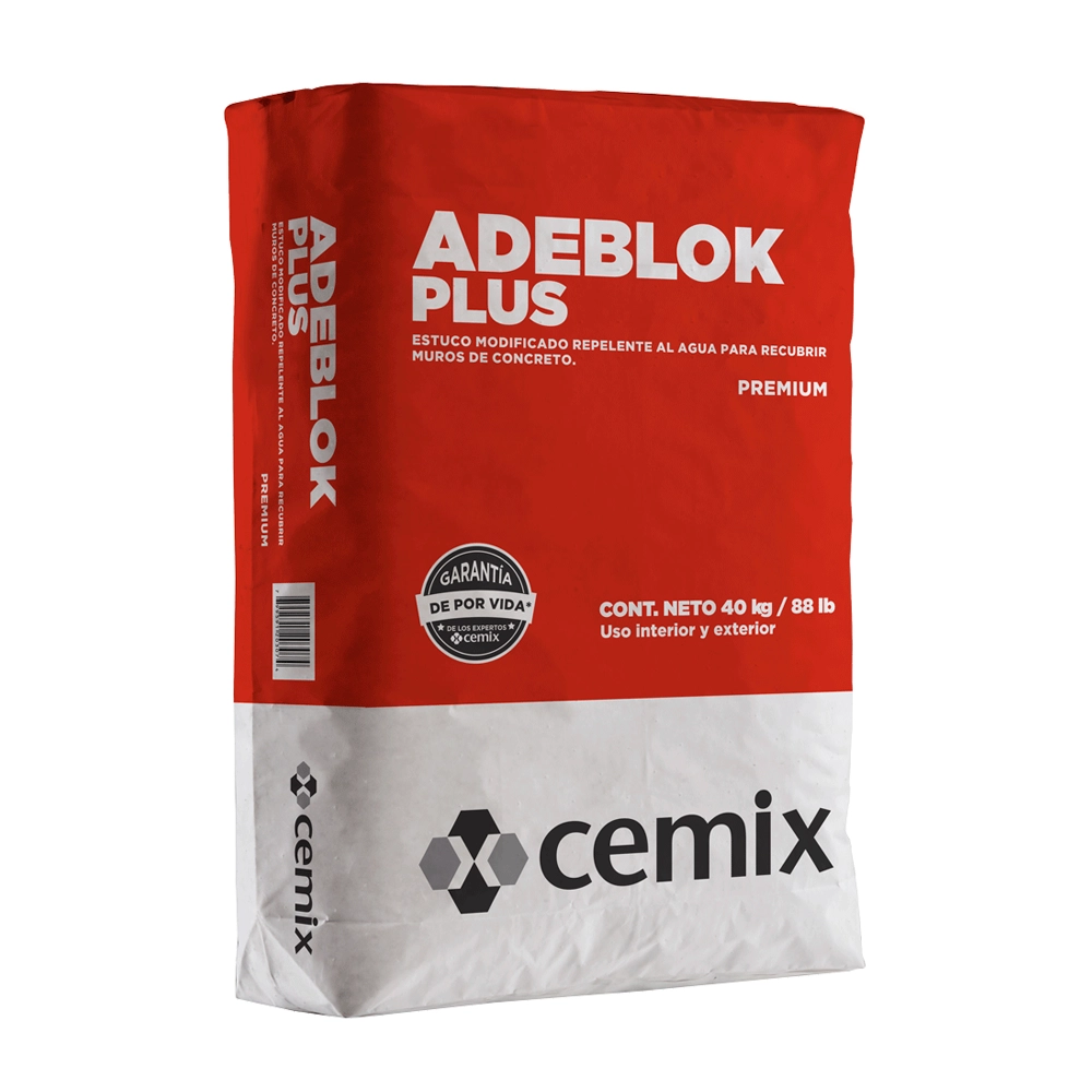 Recubrimiento en polvo base cemento, modificado con resinas y agregados de granulometría controlada para dar acabado final en superficies de concreto colado o de block de concreto.