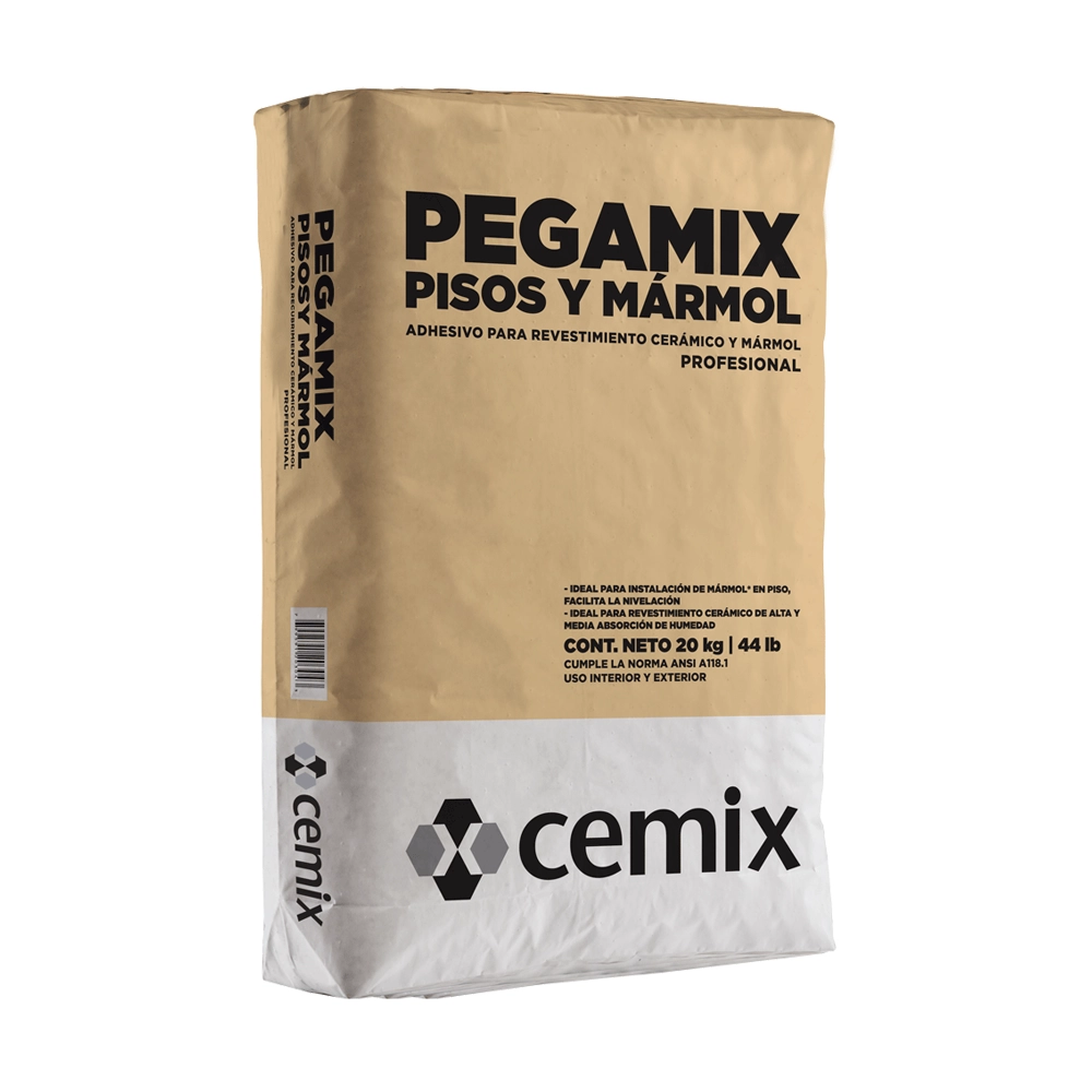 Adhesivo en polvo base cemento portland ideal para instalar pisos cerámicos y loseta de mármol de alta y media absorción de humedad, contiene químicos aditivos especiales para facilitar la instalación, tiene una consistencia cremosa de fácil aplicación en espesor de cama media de 12 mm, ideal para proyectos de viviendas nuevas, individuales o en serie.